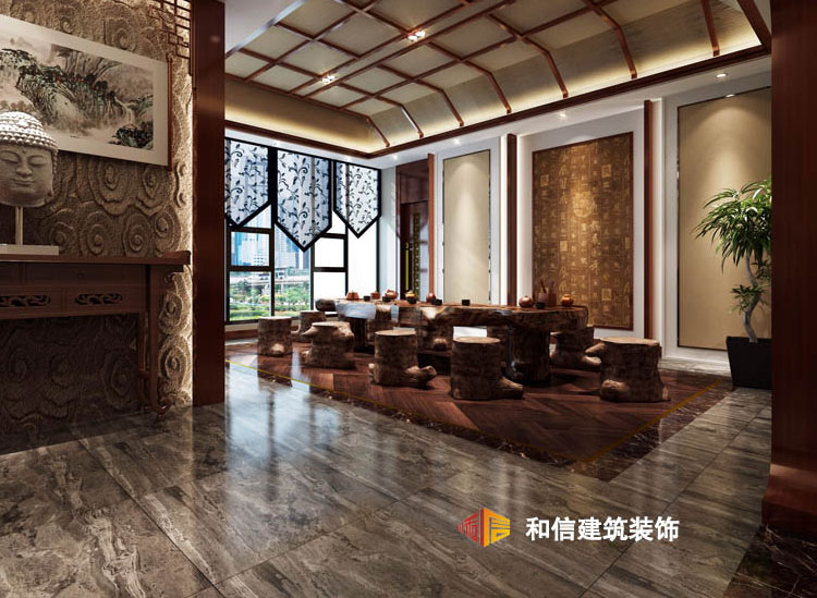 茶室講究心境與環(huán)境的契合,自然且隨性,原木桌凳的設(shè)計(jì)可以很好地傳達(dá)出中式的文雅氣息,賦予整個(gè)空間悠然質(zhì)樸之境,造型獨(dú)特的茶具、器皿匯聚陳一首古樸的韻律。